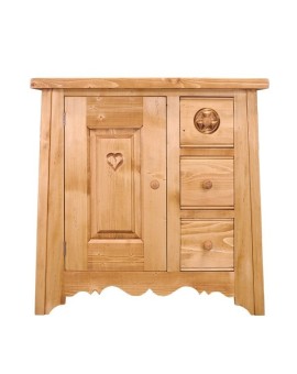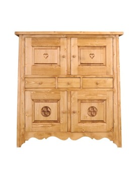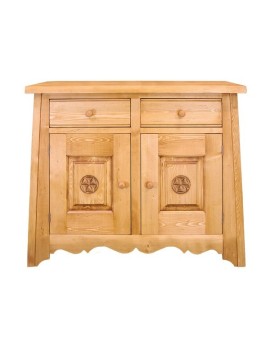 Bahut 2 portes 2 tiroirs Epicéa 100% massif Sculptures rosace Une forme originale en "trapèze"