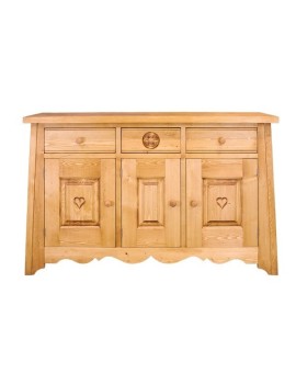 Bahut 3 portes 3 tiroirs Epicéa 100% massif Sculptures rosace Une forme originale en "trapèze"