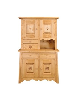 Meuble Vaisselier complet Bas + haut largeur 115cm Epicéa 100% massif Sculptures rosace et coeur Une forme originale en "trapèze"