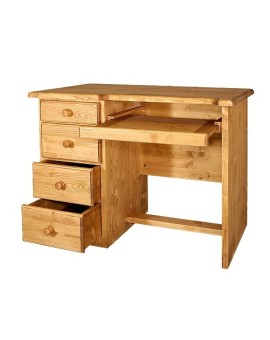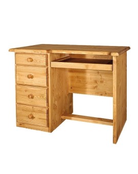 Grand bureau 4 tiroirs + porte + tablette coulissante en épicéa 100% massif