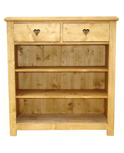 Bahut ouvert 2 tiroirs épicéa cœurs découpés